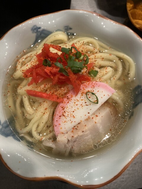 先ず もずく酢のつきだし しっかりした歯応えに驚き!薔薇のアグー豚登場〜 特製ポン酢 シークワーサー薬味 水菜を巻き巻きしたり ♪最高♪ 〆は沖縄そばをチョイス。♡うわっ優し〜味のお出汁!に感動。味変しながらまた感動 最後まで飽きなく美味しさの上の上を超えてくる アグー豚の本来の旨味にも感動ばかり 。最高のおもてなしと 贅沢なアグー豚しゃぶ 2025年このような素敵なお店で食事が出来たこと