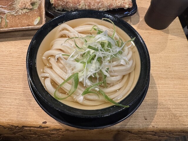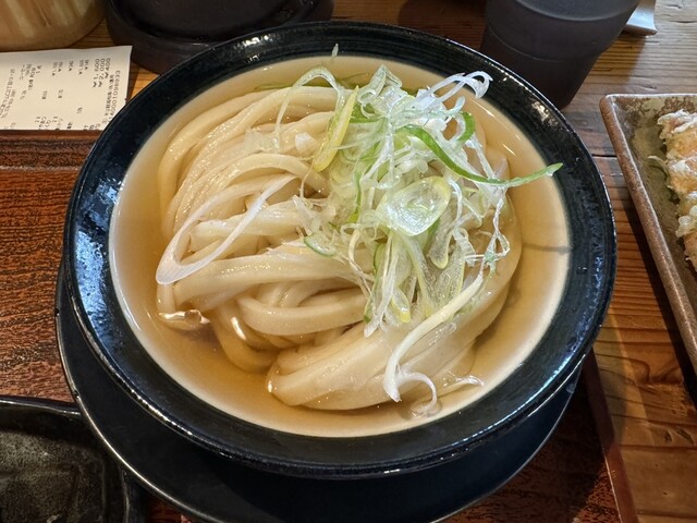 取り放題のネギと生姜をとってうどんが到着するのを席で待ちます。約10分ほど待ってうどんが出来上がり、いざ実食。