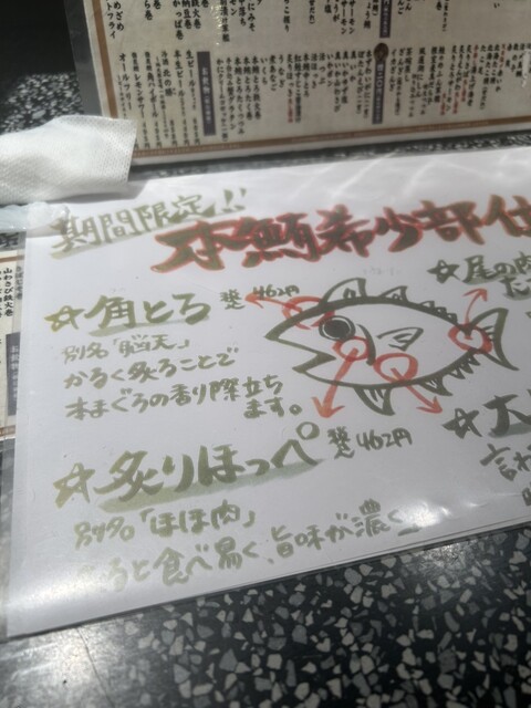 希少部位というマグロの角トロも勢いで頼んだのですが、、