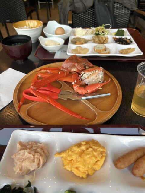 朝食凄い‼️蟹、ノドクロ美味しすぎ。