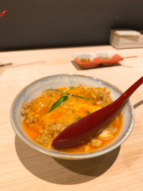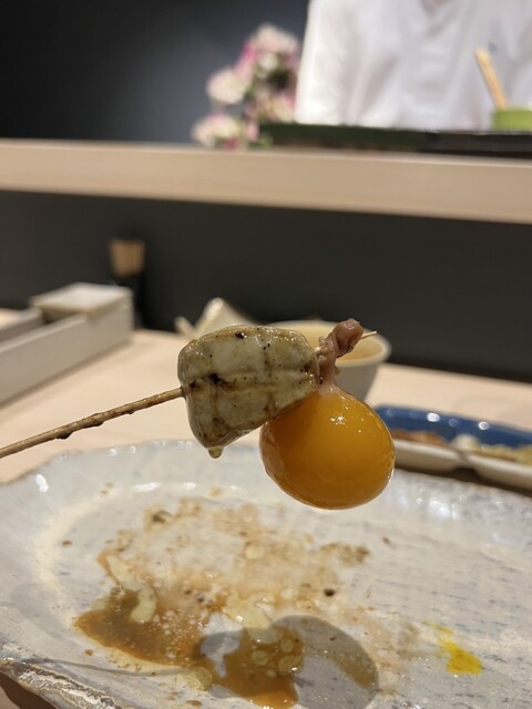 つくねは卵黄を絡めていただくスタイルで、