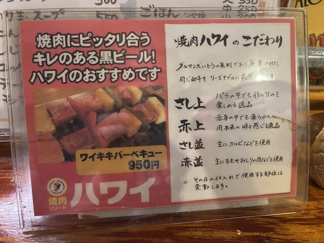 グルマンズいとうさんの姉妹店ということで高級焼肉かな?と思いきやハワイをコンセプトにした店内はスタッフが全員アロハとまるで大衆焼肉のような居心地の良さ。