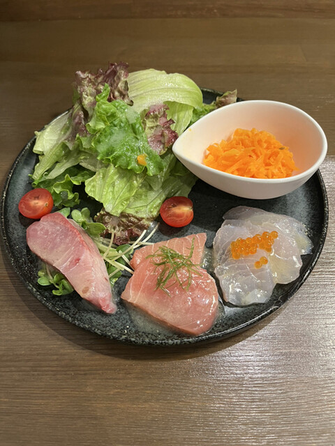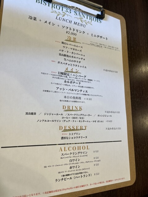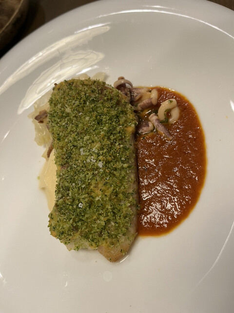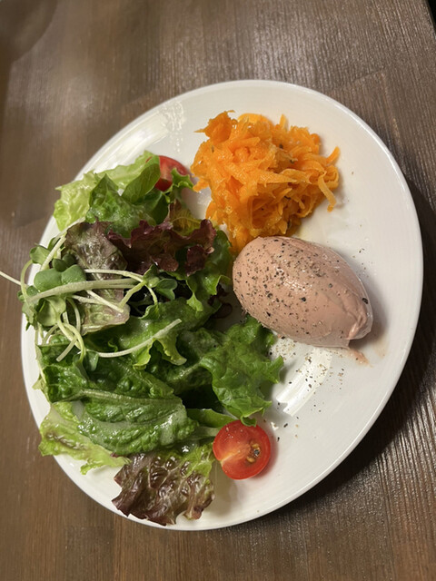 何度か利用させてもらっていますが、毎回美味しい前菜とメインが食べられて大満足です。まず、素晴らしいのが前菜です。選択できますが、レバーペーストが絶品です。ワインを頼めば何杯でも飲めてしまえそうな逸品です。もうひとつ、鮮魚のカルパッチョも外せません。その時々の魚が4、5種類並んでいてどれも美味しいです。そしてメインはその時々で変わるようで、今回は日曜限定のハンバーグを頼みました。初めて食べましたが、ハンバーグのようで、予想した形と全く異なり、驚きました。見た目はパン粉のようなものがまぶされていて、一瞬メンチカツ?と思ったほどです。切ってみると、確かに中はハンバーグですが、程よく火が通っており、焼き過ぎず、ハンバーグの概念刷新という感じでした。その衣部分は唐辛子の粉にいろいろ混ぜたもので、これがハンバーグによくあい、とても美味しかったです。驚きと美味しさとで、2度びっくりしました。またぜひ食べに行きたいです。