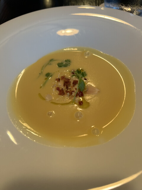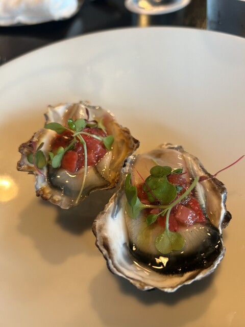 まずはじめの前菜で頂いた生の牡蠣がとても美味しく、スープもさらっとした飲むだけのスープではなく食感も楽しめるスープでとても美味しくてメインはステーキをいただいたのですがこれも肉肉しいしっかりした味で美...