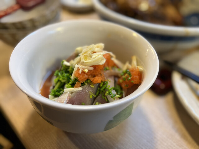 ちなみに鯖ニンニクが1つの名物ですが、鯖が無い時は鯵に変更して仕上げてくれ、これがまた乙な旨さで九州菊がススム。笑