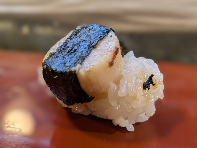 チーズはセミハードタイプのチーズ系だと思われますが、それを鰆、椎茸、銀杏等の上にかけ、焼いた一品です。まさか鮨屋さんで…とも思いましたが、旨しです!笑 お母さんの腕も侮れません!笑