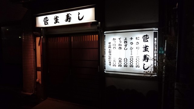 今日は早く仕事を切り上げて、久しぶりの後輩と会いまして、後輩の用意した「菅生寿司」さんへ。
