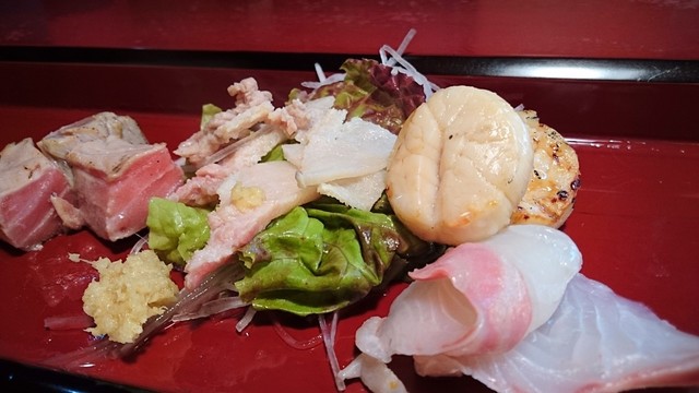 →この日に出てきたのは、タイラギ、赤貝、太刀魚の炙り、鱸(すずき)の昆布〆、平目の昆布〆、帆立の炙り醤油、鰆(さわら)、鱸の肝と胃袋を頂きました^ ^
