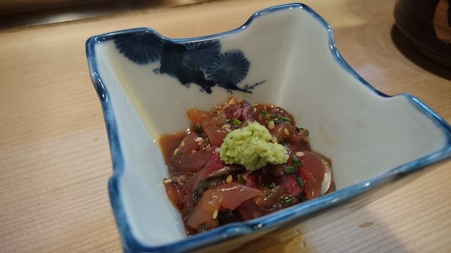 攻略法は、おススメを大将に確認するか、好きな魚を告げてお任せのアテをオーダーするか。