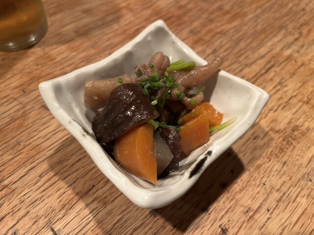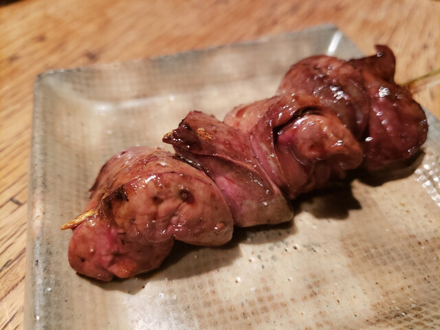 特に肝。薩摩地鶏特有の茶黄色は、その見た目からネットリとしているだろうと思われるタイプ。