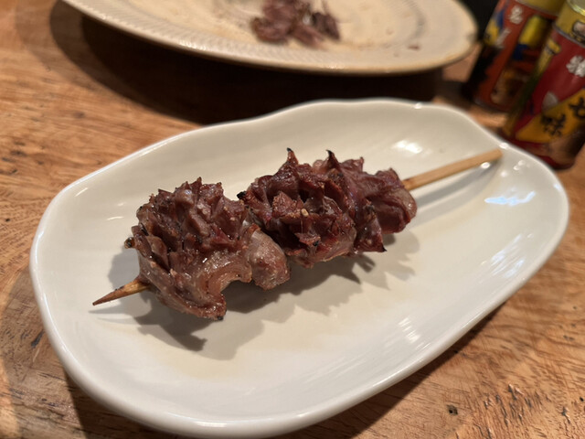 →この日は、ぼんじり(100円)、とり皮(120円)、とりトロ(120円)、豚のどナンコツ(130円)、山芋(150円)、せせり(160円)等々をオーダー!