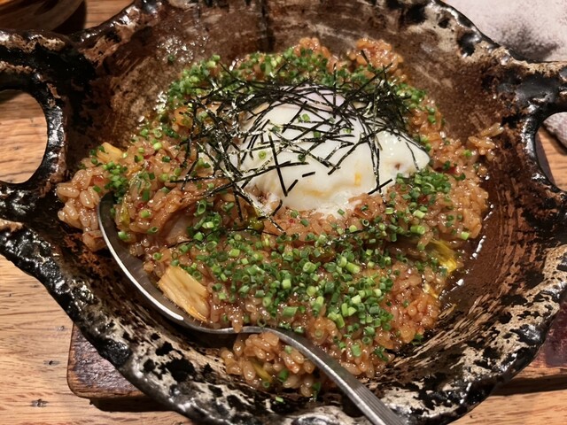 チャーハンと言うより分かり易く言えばホルモン鍋の後の〆飯と言った方がイメージが付くと思います。