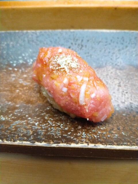 江戸前の伝統をしっかりと施したネタから、最新の仕事を加えたものまで楽しめ、つまみや握りをランダムに提供する構成は、すし匠が発祥と言われております