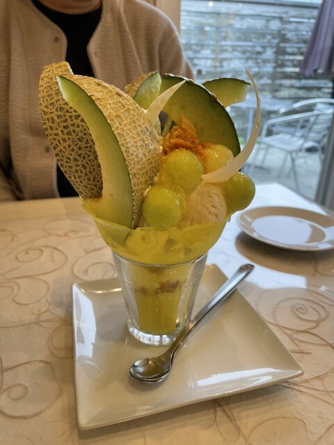 近くの宿に泊まり、宿の方の情報で1日限定のメロンパフェを知りました。