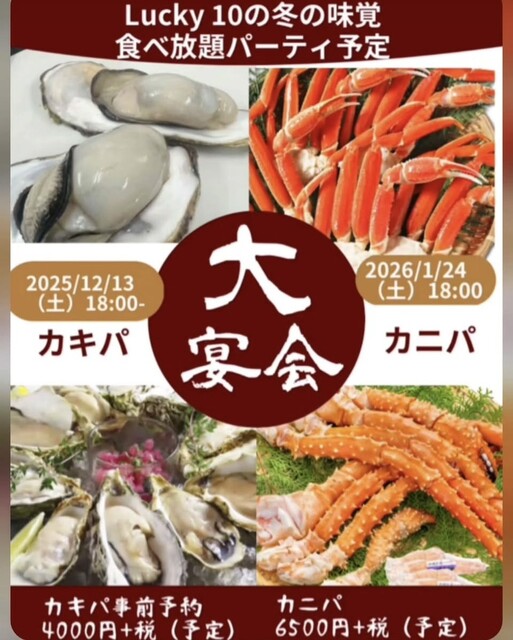こちらのお店、月1でイベントも開催しており、昨夜は『LUCKY10の冬の味覚 食べ放題パーティ カキパ』ということで、イベントにお邪魔させていただきました✨