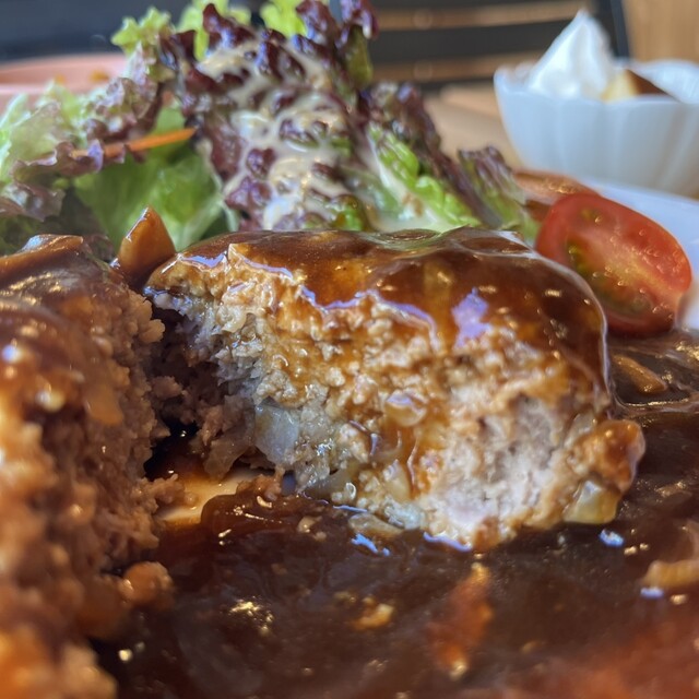 濃厚デミソースがかかった肉厚バーグ♪