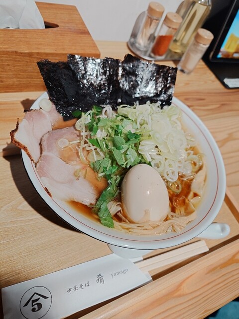 肉中華、追加ネギ、海苔と味付け玉子をトッピングでいただきました。(テイクアウトでドルチェプレーン味)