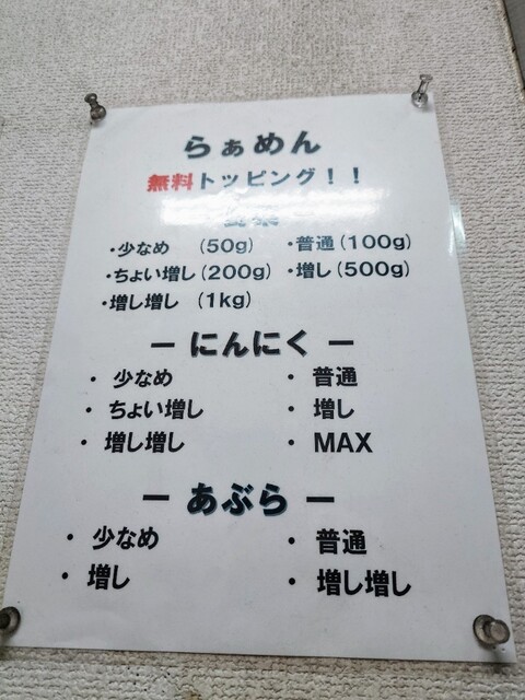 ニンニクアブラちょい増し柔らかめ野菜普通