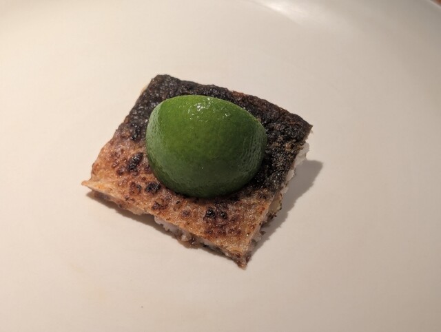 前菜最後には鰻が。皮目がどこまでもカリッと香ばしく、シンプルに柑橘を絞れば他にはなにも要らない。ある意味、究極に旨い白焼きのようです。