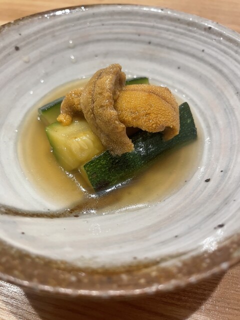 びっくり。ズッキーニの歯応えとウニの歯応えは