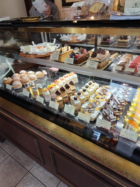日曜夕方にも関わらず、店頭には沢山の種類のケーキが並ぶ。