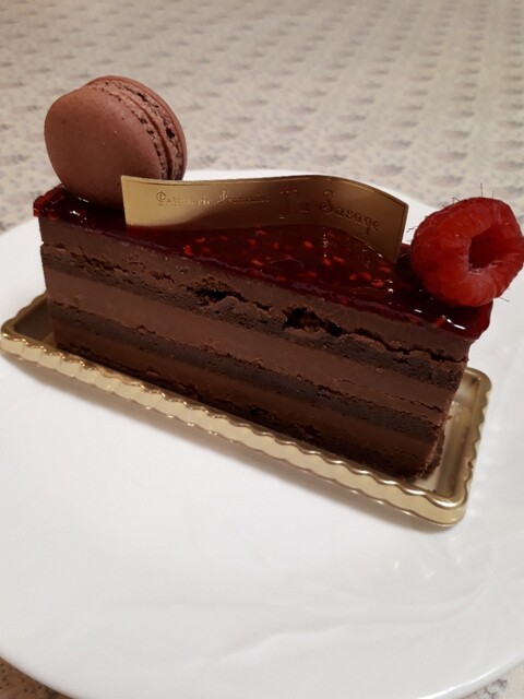 上層部のフランボワーズジャムとチョコが特に濃厚で、下層部のチョコはマイルド。