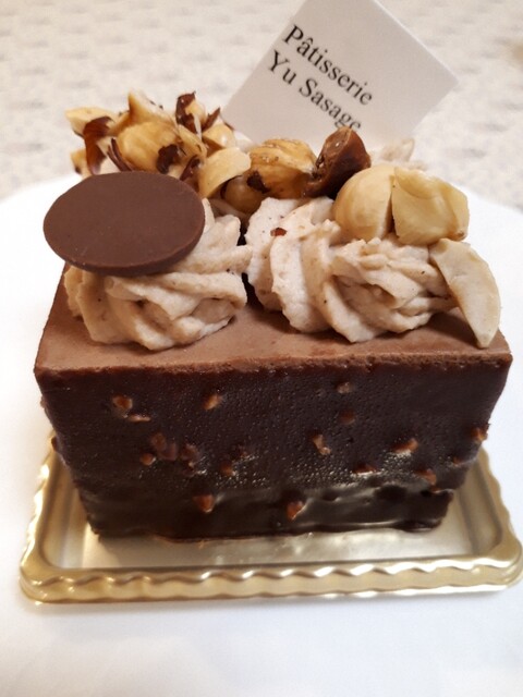 構成は、上部にヘーゼルナッツのクレームシャンティ、中心部にチョコレートムースとヘーゼルナッツのクリーム、底にヘーゼルナッツとフィヤンティーヌのロッシェ。