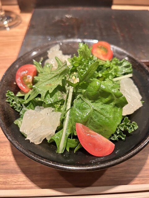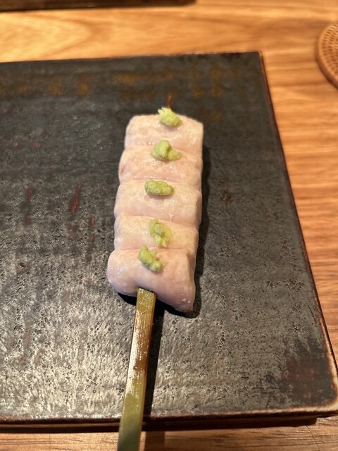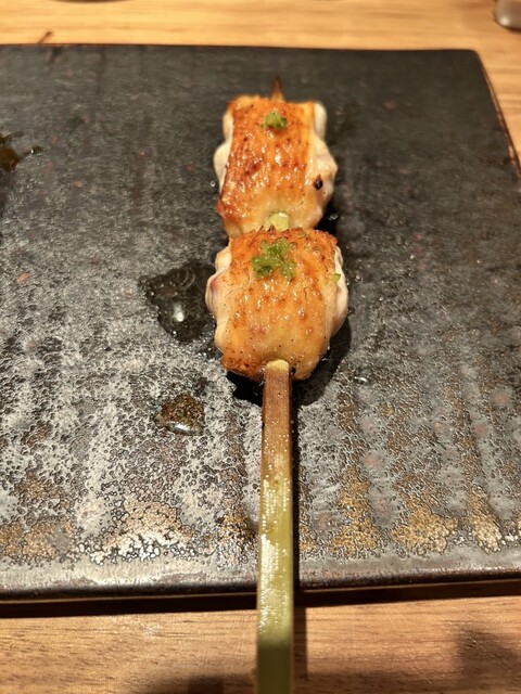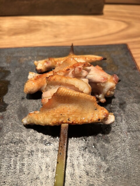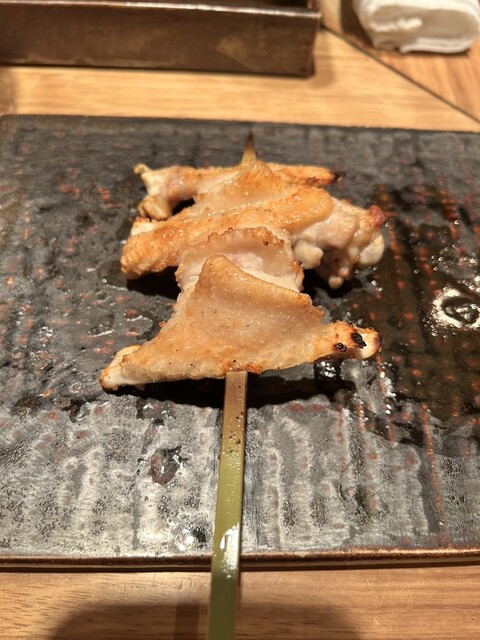 ・黒さつま鶏の皮(←超お気に入り、ボイルした皮をタレにくぐらせてトロトロな仕上がり)