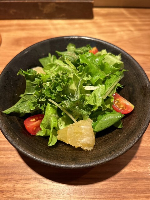 ・季節の無農薬野菜のサラダ(お馴染みの。野菜の味濃くて好きです)
