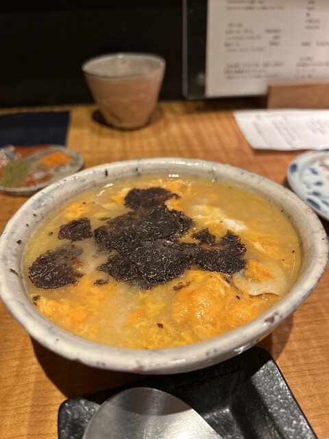 鶏のパワーがトリュフの香りに負けてないです。たまごとトリュフを絡めて食べるジューシーなつくねに唸りました……