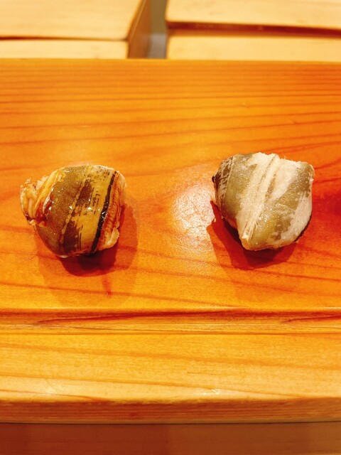 最後にお願いした穴子は、白焼きなんだなーと見ていたら、握ってから半分に切り、白焼きと、タレとふたつの味にしてくださいました。