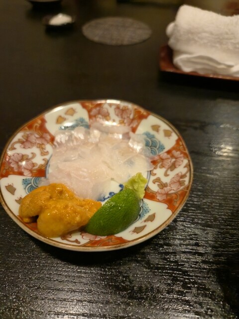 穴子の刺身をうにと 穴子の天ぷら最高なんだよね