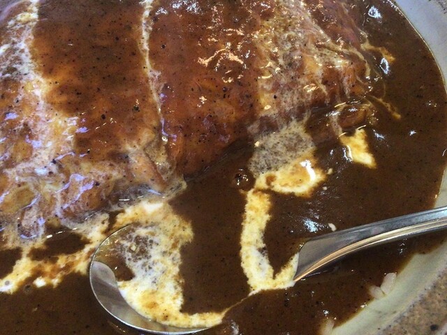 夢中で食べますとカツとカレーライスが胃の中へ洪水のように流れて入っていきますよ~。