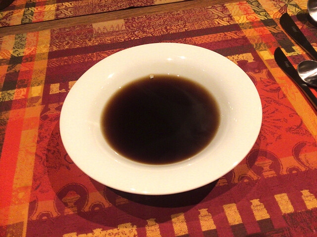 真っ黒なのに、濁りが全くない澄んだコンソメスープには驚きなのです~((;゚Д゚)))