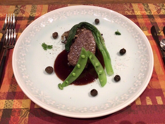 「宮崎県産牛フィレのロースト 牛蒡の赤ワイン煮添え」