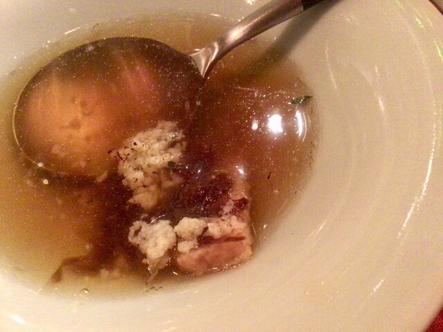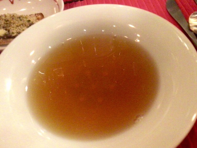 「コンソメスープ 牛テールのメダリオン添え」