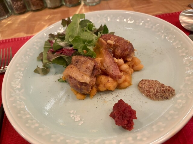 「鴨もも肉のコンフィ・自家製ベーコン・自家製ソーセージ」