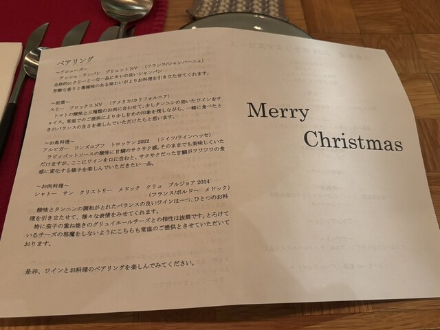 12/21~25限定の「クリスマスコース」を予約して伺いました(o^^o)