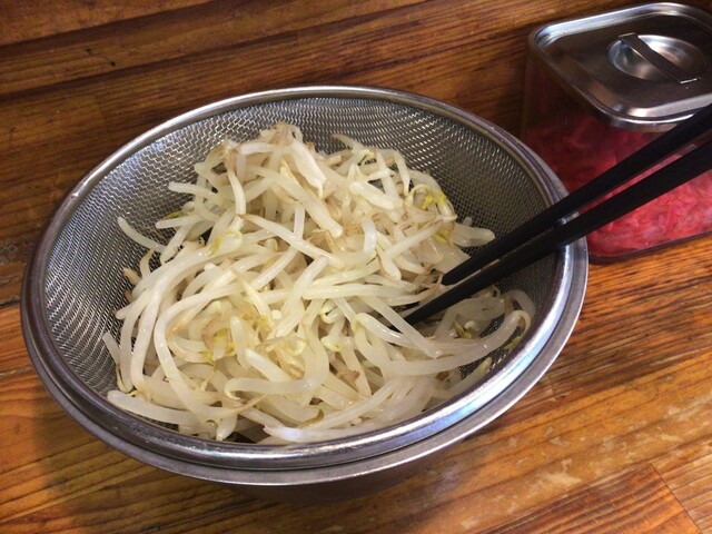 麺を平らげたら、添え付けのモヤシがスープに合う~~っ!