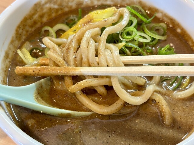 麺は芳醇な小麦香る、特注のモッチモチ・ツルツルな全粒粉入り極太麺。