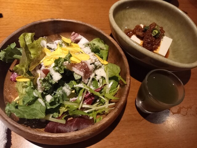飲み放題付のコースでしたが全て個別に盛付けもされており楽でした。お肉料理、二日酔い防止の青汁的な健康ドリンクも美味しかったです。