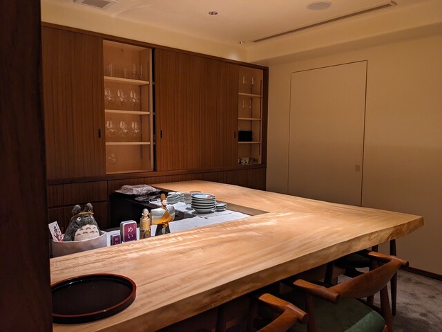 メインカウンターは、L字のカウンター6席となります。お隣には個室があります。
