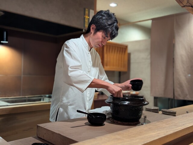 渡仏中のパリで開催されたイベントで会った菊乃井3代目当主の村田吉弘氏との出会いをきっかけに日本料理の素材への向き合い方や技術の深みなどの“日本料理の技術美”に惹かれて、帰国後、京都の3つ星・老舗料亭「菊乃井 本店」で基礎から学び直して9年間研鑽。