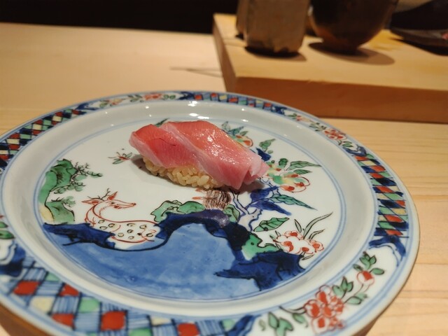 定期訪問。今回も素晴らしいラインナップでした。スペシャリテが多すぎです。季節ものですとたらの白子、海苔醤油でハガツオ◎勢子蟹(甲羅盛)松葉がに(握り)新いくら(茶碗蒸し)クエの味噌漬け焼きも最高でした。アオリイカの生ゲソの握り、甘ダレとの相性もバッチリ。センスが光ります。追加はハガツオとさわらの握り。さわらはポン酢と海苔巻きで頂きましたがやはり握りは格別です。さわら、素晴らしい脂ののりで本日のNO.1今日もセンス抜群のメニューでした。