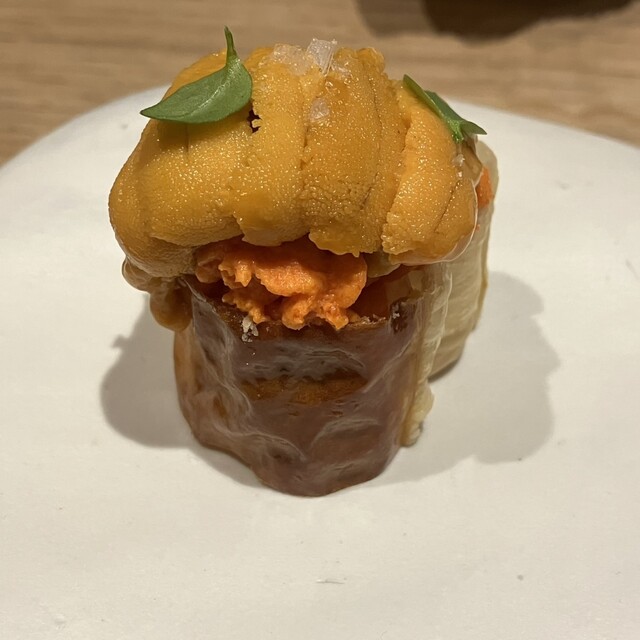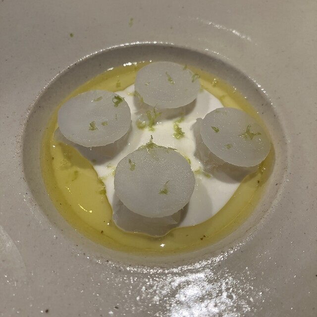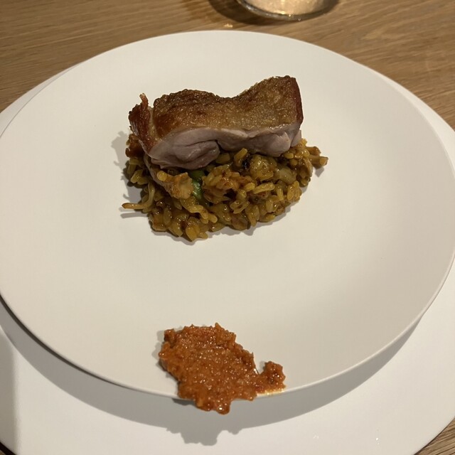 土曜ランチ 当然満席予約必須 白子のスープもハモンセラーノとイチジクを練り込んだパンも、アオリイカとチーズのソースも、アナゴのオムレツも、岩中豚も、デザートとコーヒーも、あーーどのお料理も本当に美味しい 語彙不足が恨めしい 一つ一つの食材の味がしっかり伝わってくる ペアリングのワインもいつも美味しい ワインにまつわるお話を聞かせてくださるのも楽しい お店の持つ雰囲気がとても好き 伺うたびに好きになる ずっと通い続けたいお店 必ずまた伺います ごちそうさまでした
