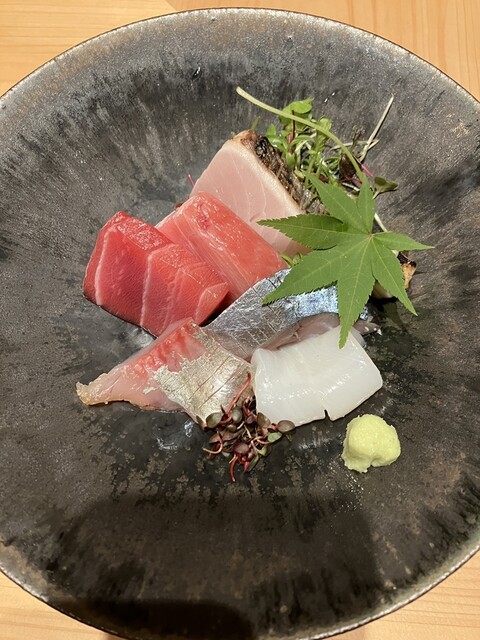 日曜夜 3年前に来店した気のおけない友人が大阪に行くならぜひ再訪したいと予約 席はカウンターのみ 一枚板のカウンターが美しい 店主さまはとても気さくな方 どのお料理も美味しい 器や酒器がどれも美しい 京都の本鮪美味 あわびの中華風サラダは丁寧に包丁の入ったあわびがごろごろ入っていて、ほんのり中華なドレッシングがとてもいい 和牛も鱗揚げも文句なし お酒によく合う いつまででもここにいたいと思う心地よさ 品の良い他のお客様も素敵 驚いたのは、我々の会話の中で茗荷が得意でないことをチラッと話していたら私のお造りのツマだけ茗荷抜きだったこと さらっとこんなことをされてしまうと惚れてしまう お料理を作られる手際もよくお二人の連携が見ていて気持ちいい お酒を選んでくださる店員さんの笑顔も素敵 散々飲んで食べてこちらの価格帯に収まるのはすごい 最後までしっかりお見送りしていただいて嬉しい 日本料理で私史上一番のお店になりました 大阪の方が羨ましい 来阪の際には延泊しても必ずまた伺いたい ごちそうさまでした