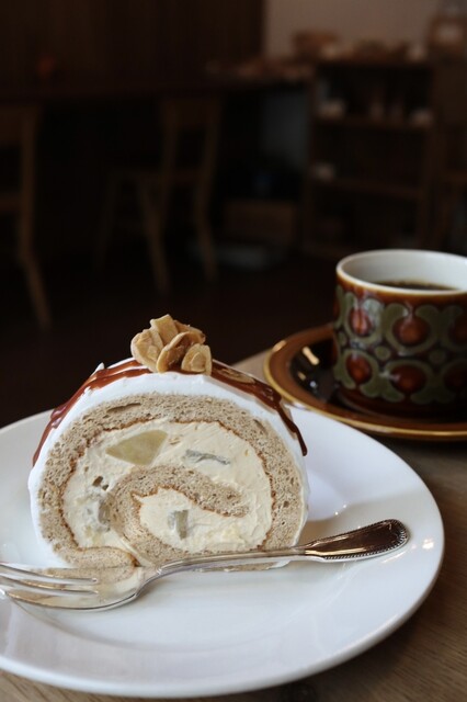 落ち着く空間で美味しいロールケーキと珈琲