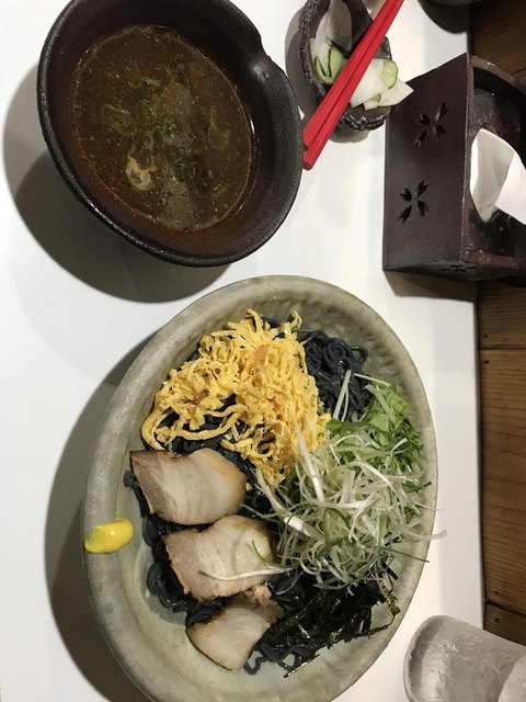 つけダレが、「ぶしダレ」と「ゴマダレ」の2種類から選べるそうで、うんうん悩んでたら、両方出していただけました。「ゴマダレ」で食べるとまさに冷やし中華って感じで、「ぶしダレ」で食べるとよくとれた出汁の風味が味わえます。