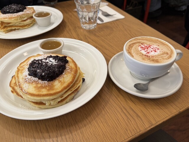 頼んだのは、ブルーベリーパンケーキと季節のメープルラズベリーラテ