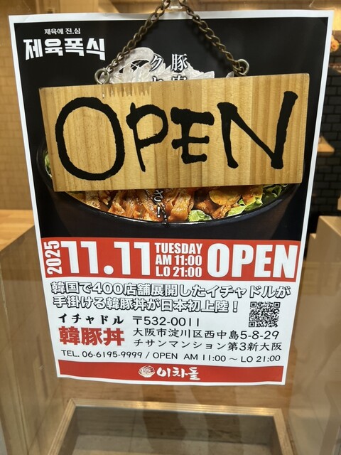 韓国で約400店舗展開している人気ブランド「イチャドル」が西中島にランチやお仕事帰りに是非‼️